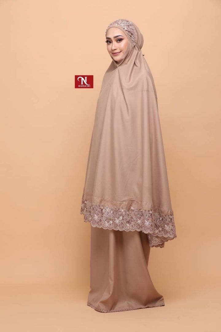 • 𝐒𝐮𝐥𝐚𝐦𝐚𝐧: Ditambah seri dengan sulaman dibahagian kepala dan hujung telekung.